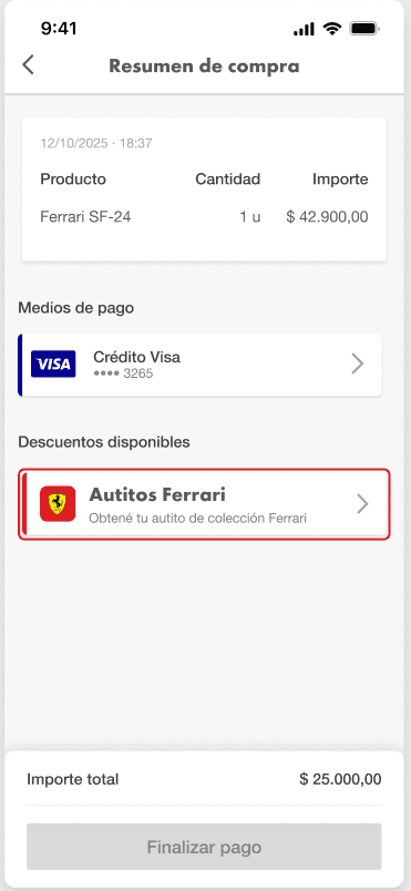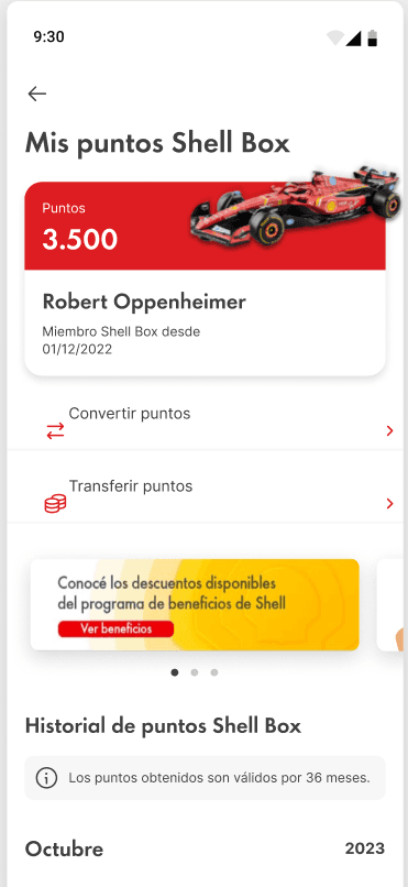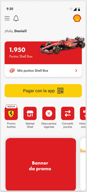 Shell Box Argentina launched a Ferrari collectibles campaign — redeem loyalty points for miniature Ferrari cars. Aspirational promotions only convert when the user understands the value, trusts the exchange, and the flow survives real states and edge cases. That's what I designed.
